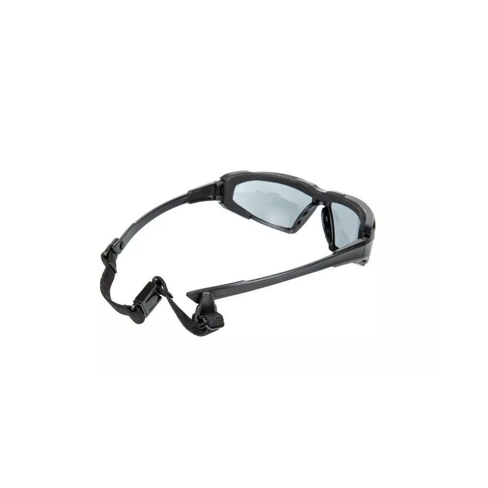 , která zabraňuje vniknutí úlomků prachu a nečistot do očí nositele. Kromě tradičních chráničů je součástí sady také elastická páska,